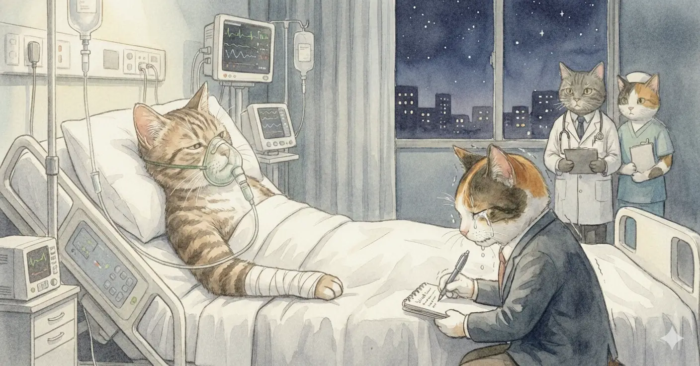 建設会社の社長、猫原 一郎(ねこはら いちろう、55歳)は、出張先で大規模な玉突き事故に巻き込まれました。意識不明の状態で救急搬送され、医師からは「極めて危険な状態」と告げられます。